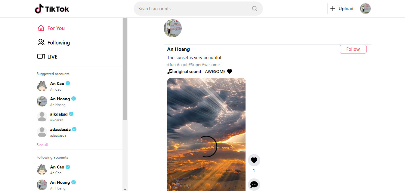 Description project: Build a fullstack Tiktok clone using NextJS, ReactJS, TypeScript, TailwindCSS, AppWrite and Vercel